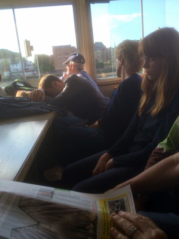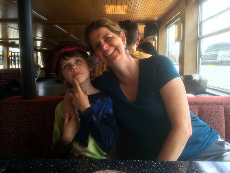 The ship on the river taking us to Greenwich. Eero is trying to decide ... something.