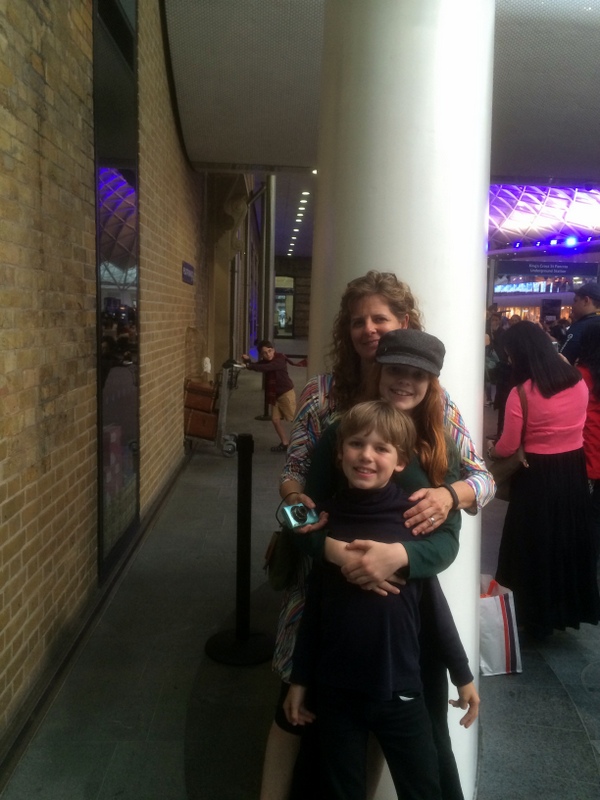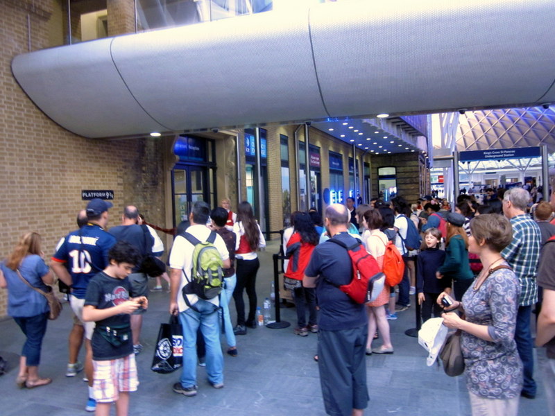 At King's Cross Station you can see a luggage cart half-disappeared into the wall, in honor of Hogwarts students. The cart is part of the display - the kid pushing it has waited 45 minutes for his turn. We muggles decided to just take a picture from the side.
