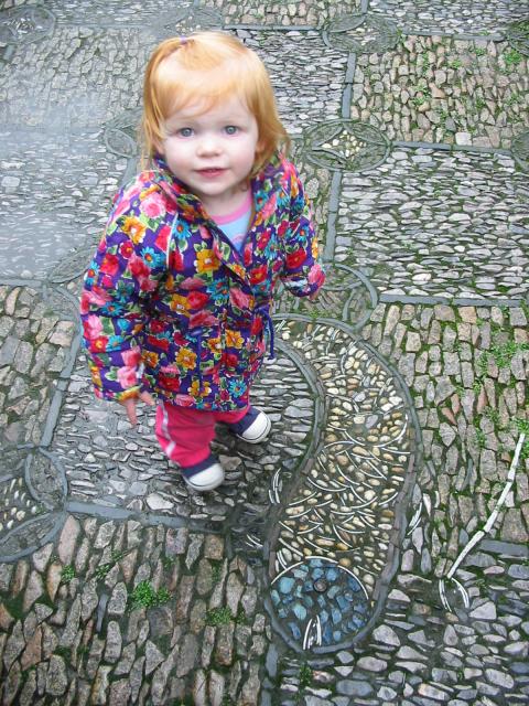 Wang Shi Yuan had some very nice stone mosaic work. Here's Cielo standing on a fish ("fish!").