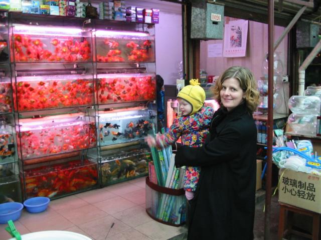 Some of the many fish for sale. In China goldfish are taken seriously. They are really quite decorative.
