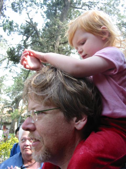 After the Forbidden City, Cielo takes a ride on Vernon's shoulders, with Nana in the background. You almost never see young Chinese children riding on parents' shoulders, because most of them wear (several layers of) split-bottom pants, through which they can pee or poop freely. You don't want that on your shoulders.