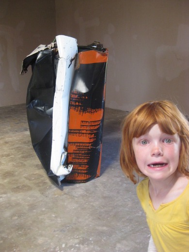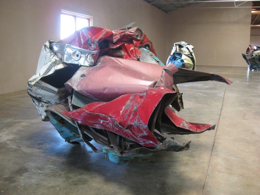 We next went to a different display space, in downtown Marfa (such as it is). It featured these crushed car part sculptures by John Chamberlain. Cielo was impressed.