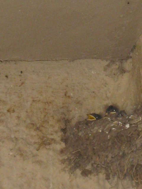 Alison and Vernon went back later that afternoon to see the light installations by Dan Flavin. But while we were waiting, Alison got a nice picture of these baby birds at the main Chinati building.